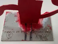 Prachtige, unieke miniatuur van Klaas Gubbels. Het beeldje is in 2016 gemaakt van staal, oorspronkelijk bedoeld als nieuwjaarskaartje voor 2017 en door de kunstenaar met de hand beschilderd. Het is daarom een uniek exemplaar. Zowel een gestanste signatuur (2017) als met de hand gesigneerd op het voetje, KG ‘16 Afmeting: 13 cm hoog, 12 cm breed, ca. 4 cm diep (voet). Het staal is ca 2 mm dik. Het beeldje is in uitstekende staat. Het onbeschilderde staal heeft wat vlekjes die materiaal eigen zijn. ...