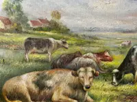 Gesigneerd rechtsonder. Onze zendingen worden verzonden door een externe dienstverlener. Zorgvuldige verzending met verzekering. Jan VAES, schilder in figuratieve stijl behorende tot de Hollandse School, is landschapsschilder, zeeman, dierenschilder. Hij neemt deel aan persoonlijke tentoonstellingen in Parijs, Lille, Honfleur, Juan les Pins... aan groepstentoonstellingen in Lyon, Toulouse, Rennes... en aan internationale tentoonstellingen in België, Hongarije, Ierland.