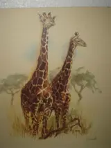 Giraffes tekening (reproduktie) 40 x 43 cm,gst.