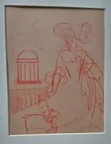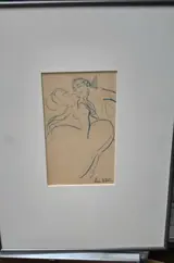 3 Tekeningen 2x potlood blauw en rood en 1x aquarell