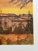 Prachtige zeefdruk van meester Alberto Sughi, met een totale afmeting van 50x60cm, in donkere tinten, of het nu gaat om werken van personages of landschappen, zoals de buitenwijken van grote steden, die elementen van socialisatie zijn maar die plekken van individuele eenzaamheid blijken te zijn .