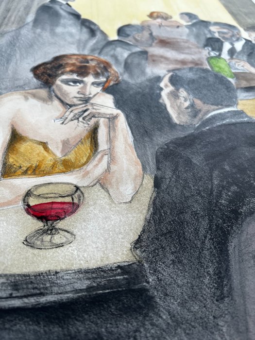 Handgekleurde litho van meester Alberto Sughi, totale afmeting 60x80cm