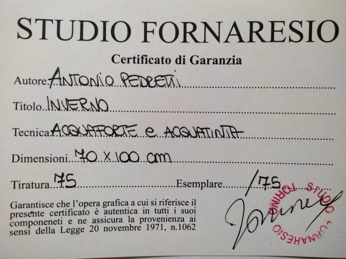 Certificaat van echtheid en droogstempel door Studio Fornaresio