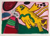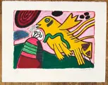 Mooie originele zeefdruk van de schilder Guillaume Corneille, geboren in Luik uit Nederlandse ouders, stichtend lid van de Cobra groep.