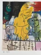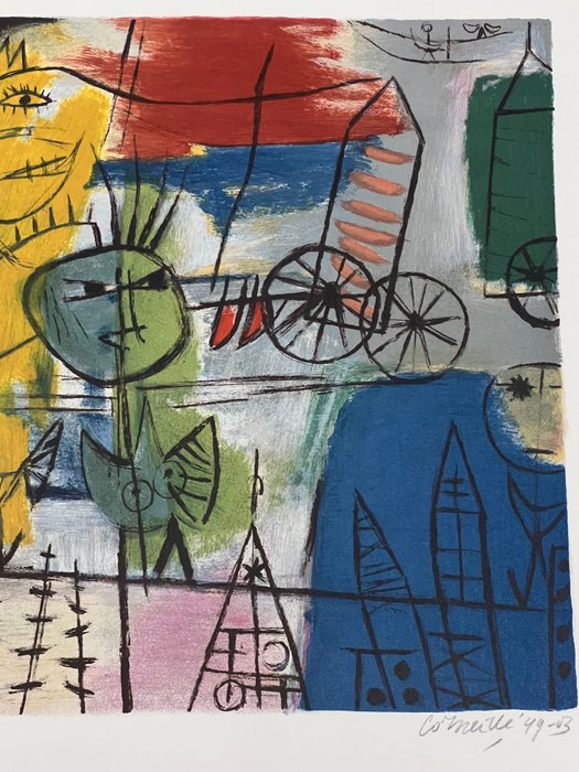 Werk gesigneerd door de schilder Guillaume Corneille (1922-2010), geboren in Luik uit Nederlandse ouders, stichtend lid van de Cobra-groep.