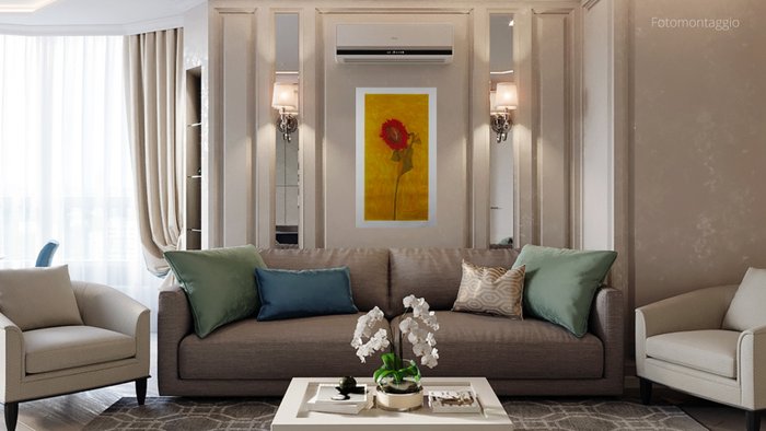 De uitgever vroeg de kunstenaar een werk te ontwerpen dat zelfs ontleed een autonome betekenis zou hebben. In de afbeelding, hierboven weergegeven, is er ook de instelling van het volledige werk.