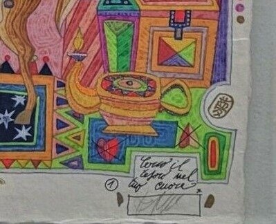 Zeefdruk op handgeschept papier verfraaid met flocking, metalen bedrukt met drukdruk, multi-materiaal achtergronden, details verrijkt met glitter en beschilderd met meer dan 35 kleurpassages. De oplage is gemaakt in honderdzeventig exemplaren waarvan: honderdveertig genummerd in Arabische cijfers van 1/140 tot 140/140, vijfentwintig genummerd in Romeinse cijfers