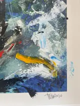 Prachtig meerwerk, Fine Art giclée van meester Francesco Toraldo, waar de invloed van het Amerikaanse abstract expressionisme (vooral Pollock en action painting) in zijn stijl duidelijk terugkomt. In de productie van zijn werken kunnen we zeer sterke gebarenelementen zien die hem ertoe brengen de oppervlakken te vullen en een chaotische werveling van kleuren te vormen. De figuratie, het onderwerp van het doek, komt uiteindelijk uit deze werveling en vloeit harmonieus in elkaar over.