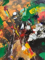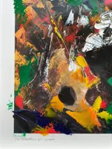 Prachtig meerwerk, Fine Art giclée van meester Francesco Toraldo, waar de invloed van het Amerikaanse abstract expressionisme (vooral Pollock en action painting) in zijn stijl duidelijk terugkomt. In de productie van zijn werken kunnen we zeer sterke gebarenelementen zien die hem ertoe brengen de oppervlakken te vullen en een chaotische werveling van kleuren te vormen. De figuratie, het onderwerp van het doek, komt uiteindelijk uit deze werveling en vloeit harmonieus in elkaar over.