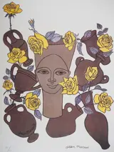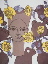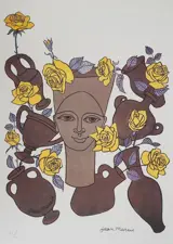 Femme, fleurs en poteries