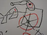 Plaat 1 van de portfolio "Ubu aux Baleares"; Begonnen in 1963, werd deze serie litho's pas in 1971 voltooid. De oplage was beperkt tot 120 exemplaren. Een fotokopie van het bewijs van