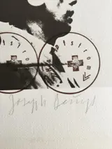 De geveilde fotolithografie, "UDITO", uit de serie "I cinque sensi", is met potlood gesigneerd en genummerd (achterop). Het heeft het reliëfstempel van de uitgever als garantie voor de originaliteit. Het is gemaakt voor de collectie "Le Copertine Firmate di BOLAFFIARTE" van Joseph Beuys. De Duitse kunstenaar die de messias was van een nieuwe kunst waarin iedereen kunstenaar is, omdat ze een 'sociale sculptuur' modelleren en dus een utopische samenleving die wordt geregeerd door een directe democratie. Een kunstenaar en een profeet.