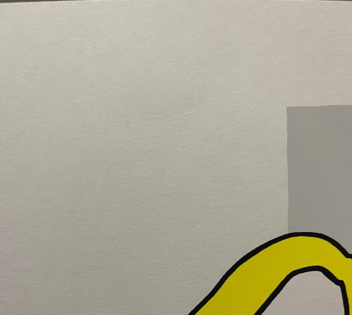 Er is een vouw van het papier linksboven, rechtsboven en op de vier hoeken, en een kleine, nauwelijks zichtbare donkere vlek op het centrale witte gedeelte