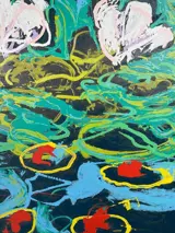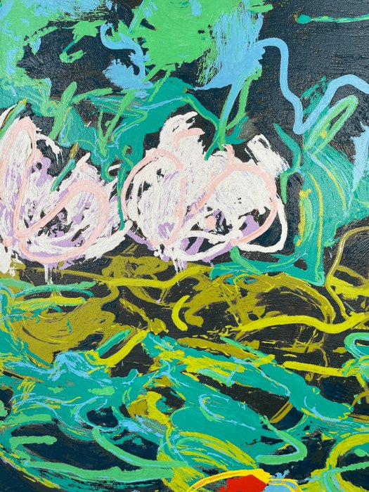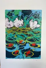 Originele zeefdruk van Maestro Mario Schifano uit 1996 getekend op 199 Arabisch + Romeins C + 100 P.A. + 100 H.C. handgesigneerd, in een van de belangrijkste thema's: "Waterlelies".