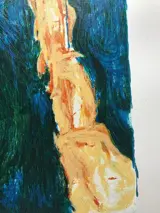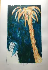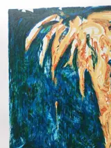 Mario Schifano "textiel email zeefdruk op papier" 30 kleurpassages, formaat 70X100, titel "Palma" uit 1996, handtekening en editie in potlood, reliëfstempel, uitgegeven, vol IV, Torcular editions, 1997/97, met certificaat.