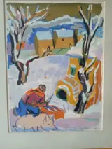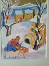 Lithografie gesigneerd en genummerd 16/120 door de schilder uit Marseille (Frankrijk) Pierre Ambrogiani (1907-1985) getiteld la tuade du poche.