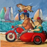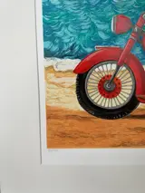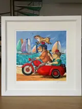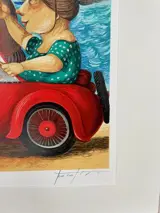 De zeefdruk toont de evolutie van de meester in een nieuwe figuratie waarin de bijna psychedelische kleuren de boventoon voeren, samen met de speelsheid die altijd typerend is geweest voor de werken van de kunstenaar.