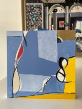 Zeefdrukcollage en bladgoud op hout van meester Tommaso Cascella, totale afmeting 40x40cm. met handmatige tussenkomsten, Het is ontworpen om zonder frame te worden gemonteerd en op een hoge tafel te worden aangebracht om een prachtige driedimensionaliteit te hebben en een geweldig effect te hebben in moderne omgevingen