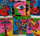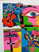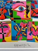 Zeefdrukwerk van Maestro Ugo Nespolo, technisch onberispelijk, Glitter en droogpersen.