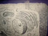 Bijzonder mooie grote oprolbare wandplaat over de bouw van de cel.