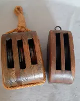 De katrol met touw en 3 houten schijven weegt 1,1kilo.