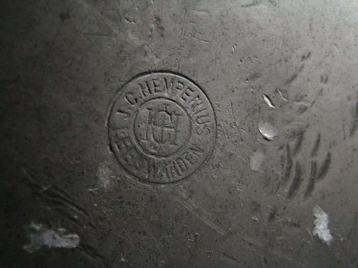 de tinne gieters merken zijn afgeslagen aan de onderkant van de maten