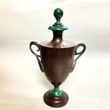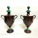 Prachtig paar oude amforen. Vroege 20e eeuw. Handgemaakt met veel smaak, in een zeer verfijnde combinatie van kleuren: het donkerbruin van het ebbenhout en het intense groen van het malachiet.
