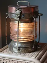 Mooi groot en zwaar model ankerlicht. Heeft een zeer robuust en doorleeft uiterlijk, heeft een ruig leven gehad, dit geeft hem karakter.