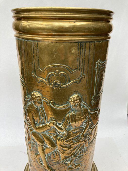 Zeer mooie antiek koper beslagen paraplubak