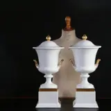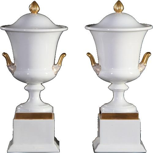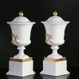 Stel van 2 Rosenthal dekselvazen of coupes met twee oren en met afneembare deksels. Staand op een vierkante voet. Vergulde accenten.