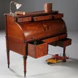 Antieke bureaus / Groot mahonie trommel- of Cilinderbureau ±1860 rijk ingelegd
