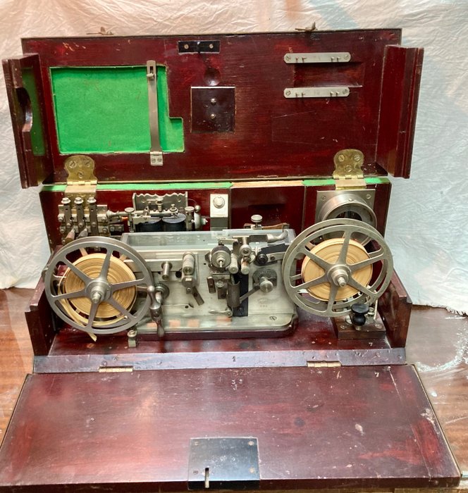 Schitterende laat 19e eeuwse Morse telegraaf, in werkende staat, uit een erfenis. Museumvoorwerp. Ik ben geen expert, maar de informatie komt van een gevestigde antiquair. In zeer goede staat, ondanks zijn leeftijd. Het mechanisme, beschermd door het originele geslepen glas, is in perfecte staat. Na meer dan 100 jaar werk en tijd is het niet gemakkelijk om het in deze staat terug te vinden. De telegraaf lijkt geen onderdelen te missen en is compleet met opwindsleutel. De drijfveer werkt zoals het hele mechanisme en lijkt geen enkele vorm van pauze te hebben. Op de voorzijde het opschrift Ferreri e Co. Milano, met serienummer 308. Normale gebruiks- en ouderdomssporen, met op de originele patina; de omstandigheden zijn meer dan goed. De telegraaf is zeer spectaculair en een uniek stuk dat niet alleen overal opvalt, maar ook aandacht, waarde en prestige creëert. De afmetingen maken het perfect en zeldzaam, zodat het in elke context kan worden geplaatst en aandacht, waarde en prestige creëert. Verzekerde en aangetekende verzending wordt per koerier gedaan terwijl de verpakking professioneel wordt behandeld.