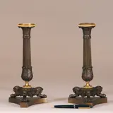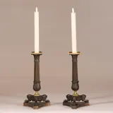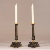 Antieke kandelaren / Stel van 2 bronzen deels vergulde kandelaren empire ca 1810
