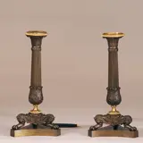 Stel Vergulde éénarmige kandelaren Empire, Frankrijk in gepatineerd brons met vergulde delen.