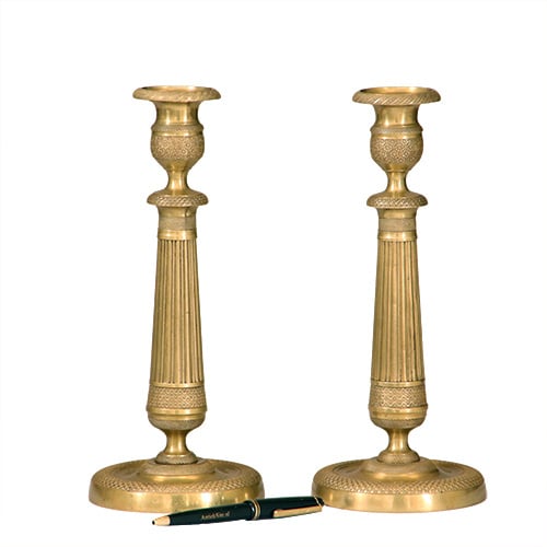 Antieke kandelaren / Stel van 2 vergulde Franse kandelaren Charles Dix ca 1825