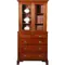 Engelse boekenkast of servieskast met twee deuren met heerlijk onregelmatig oud glas, in de onderkast 2 korte en 3 lange laden met bronzen ladentrekkers op een ovaal schild. Het geheel staand op een zogenaamde bracket feet. De eenvoudige holle kroonlijst met een ruime overstek. De bovenkast terugspringend.