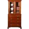 Engelse boekenkast of servieskast met twee deuren met heerlijk onregelmatig oud glas, in de onderkast 2 korte en 3 lange laden met bronzen ladentrekkers op een ovaal schild. Het geheel staand op een zogenaamde bracket feet. De eenvoudige holle kroonlijst met een ruime overstek. De bovenkast terugspringend.