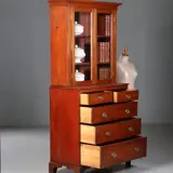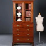 Wat is het verschil tussen een boekenkast of servieskast? Formeel gezien is deze antieke kast misschien meer een boekenkast dan servieskast. Servieskasten waren vaak dieper, alhoewel er ook talloze voorbeelden zijn van bibliotheekkasten waar royaal dubbele rijen boeken in pasten. En wie “Downton Abbey”op Netflix heeft gezien weet dat dergelijke kasten zowel met boeken als met fijn porselein werden gevuld. Vandaar misschien de uitdrukking “what’s in the cabinet” of was het what’sin the name….