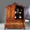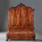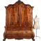 Hollands gebogen transition kabinet op klauwpoten meteen gewelfde kap, de deuren geflankeerd met halve zuilen met een bronzen Korintische kapiteel en voet. In e onderkast 3 lange laden met bronzen beslag en ladentrekkers
