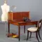 Behalve een verkleuring van het blad en wat lichte gebruikssporen in zeer goede en degelijke staat. Alle laden schuiven fijn, en de twee roldeurtjes laten zich gemakkelijk bedienen.