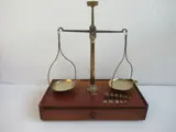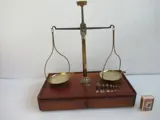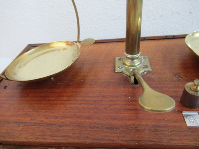 Antieke messingApothekersbalans metbijbehorende complete setgewichtjes -Frankrijk -ca.1900.