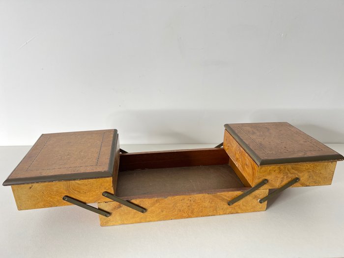 Het betreft hier een antieke naai doos in klein formaat.