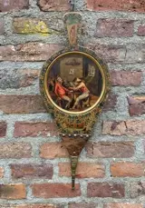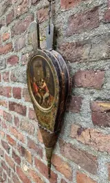 antieke origineel beschilderde blaasbalg - hout, messing, leer - 19e eeuw