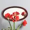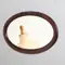 Klein arts and crafts Engelse ovaal in gepolitoerd donker eikenhout met een geslepen facet, aan de bovenzijde (of desgewenst onderkant) een gestileerde rij van kleine gestoken roosjes.