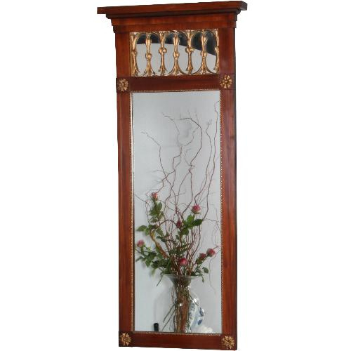 Antieke spiegels / Shouwspiegel in mahonie met goud maaswerk in de kroon 1830