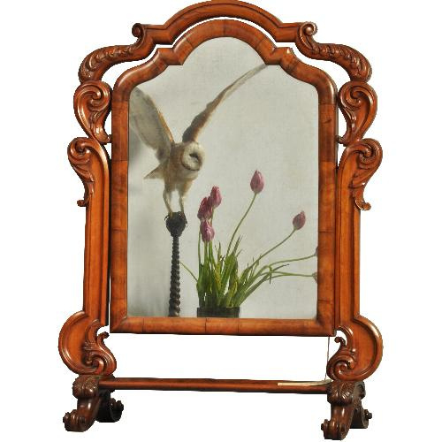 Dit was het pronkstuk op de toilettafel van een welgestelde dame in het Vicoriaanse Engeland ergens tussen 1850 en 1870. Of misschien stond de spiegel op de grond dan kon zei er namelijk haar hele outfit van top tot teen mee inspecteren.