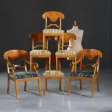 Antieke stoelen / Stel van 6 Blonde Biedermeier stoelen in berkenwortel incl. stof naar keus