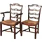 Comfortabel stel stoelen met gebogen zittingen waarvan 2 met armleuningen in uitzonderlijk fraai gepatineerd mahonie...