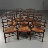 Antieke stoelen / stel van 8 mahonie ladderbacks vm Norman & Stacey 1910 bekleding naar wens