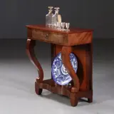 Antieke wandtafel / Trumeau ca. 1830 in mahonie met lade op gebogen voorpoten